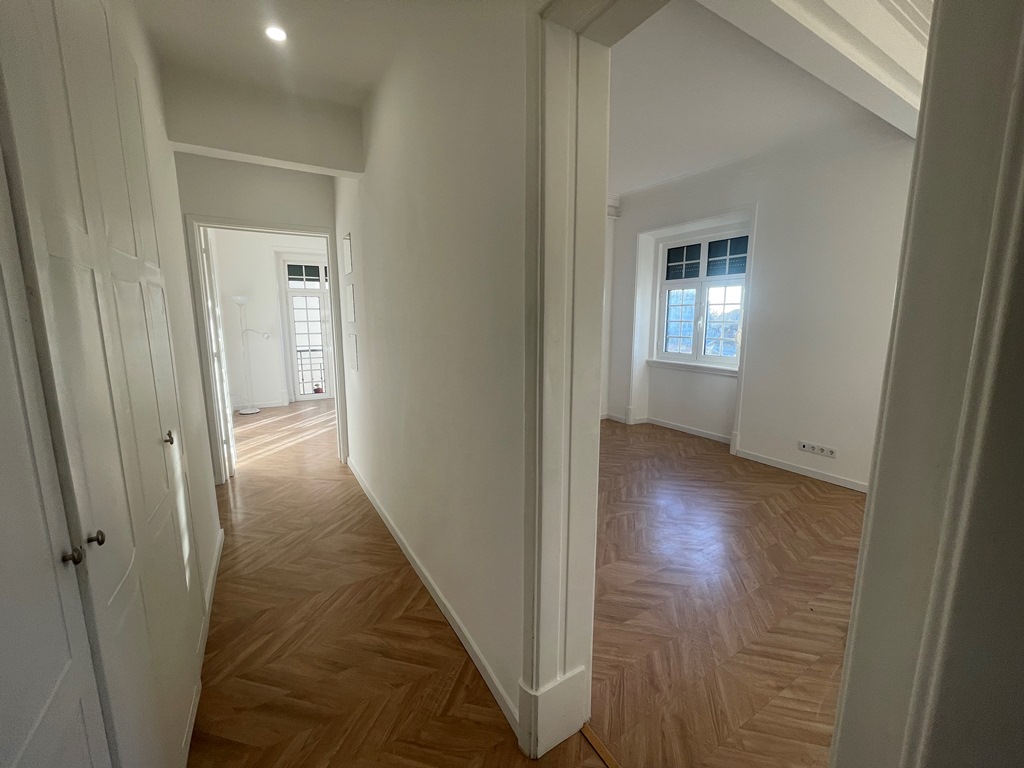 Apartamento situado no coração da zona histórica de Lisboa, composto por três quartos (dois deles com roupeiro), hall com área de arrumação, corredor com roupeiros adicionais, sala luminosa com vista de rio e cozinha totalmente equipada, complementada por despensa e marquise fechada. Dispõe de forno, placa, exaustor, combinado, máquina de lavar loiça, máquina de lavar roupa e termoacumulador. O arrendamento inclui ainda alguns móveis, nomeadamente um aparador, mesa de refeições, cadeiras, entre outros elementos.