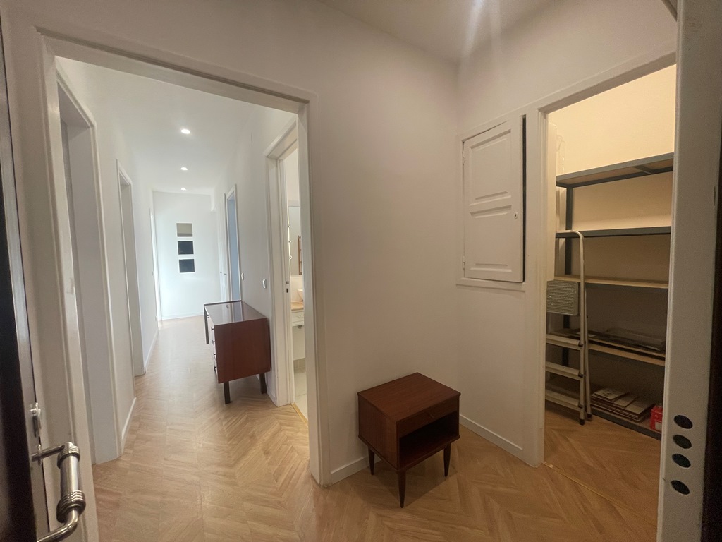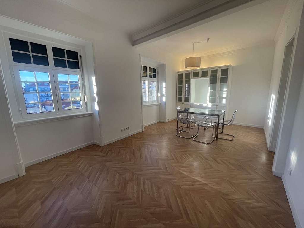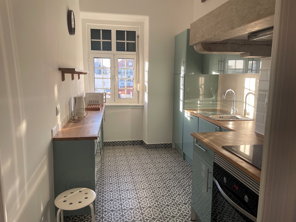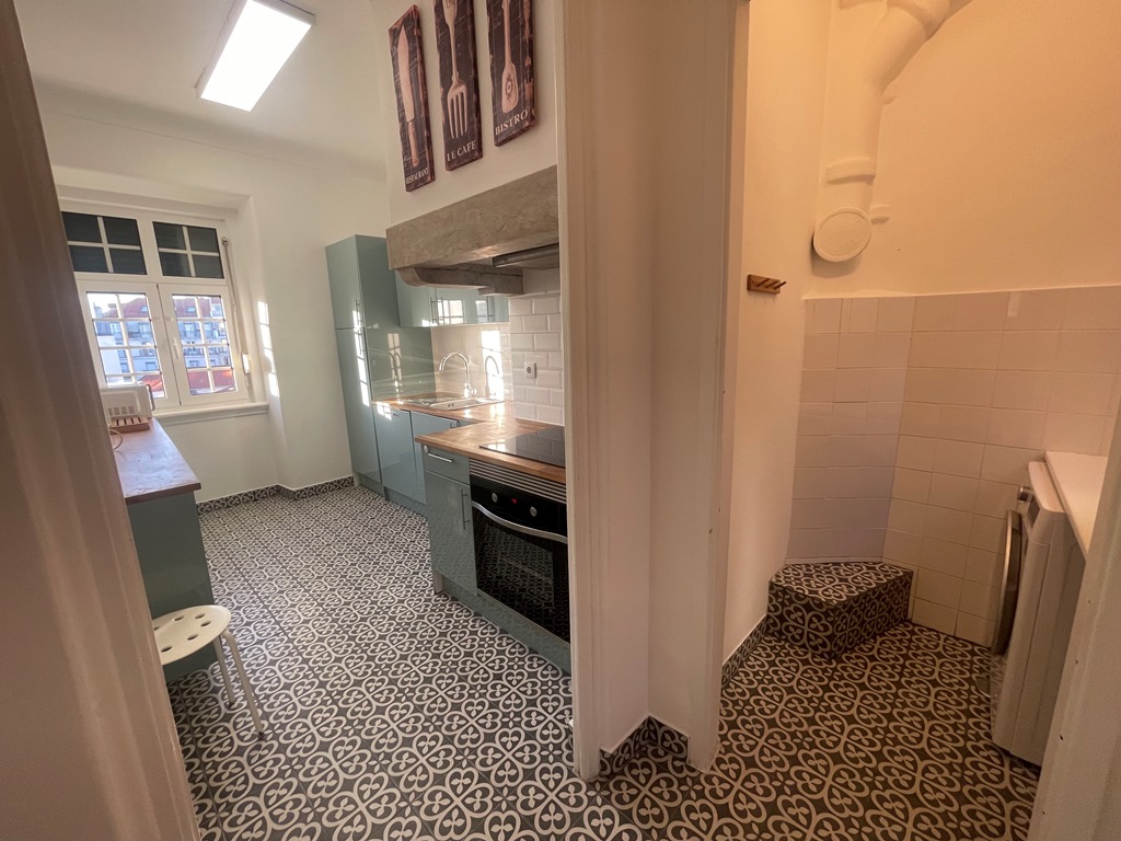 Apartamento situado no coração da zona histórica de Lisboa, composto por três quartos (dois deles com roupeiro), hall com área de arrumação, corredor com roupeiros adicionais, sala luminosa com vista de rio e cozinha totalmente equipada, complementada por despensa e marquise fechada. Dispõe de forno, placa, exaustor, combinado, máquina de lavar loiça, máquina de lavar roupa e termoacumulador. O arrendamento inclui ainda alguns móveis, nomeadamente um aparador, mesa de refeições, cadeiras, entre outros elementos.